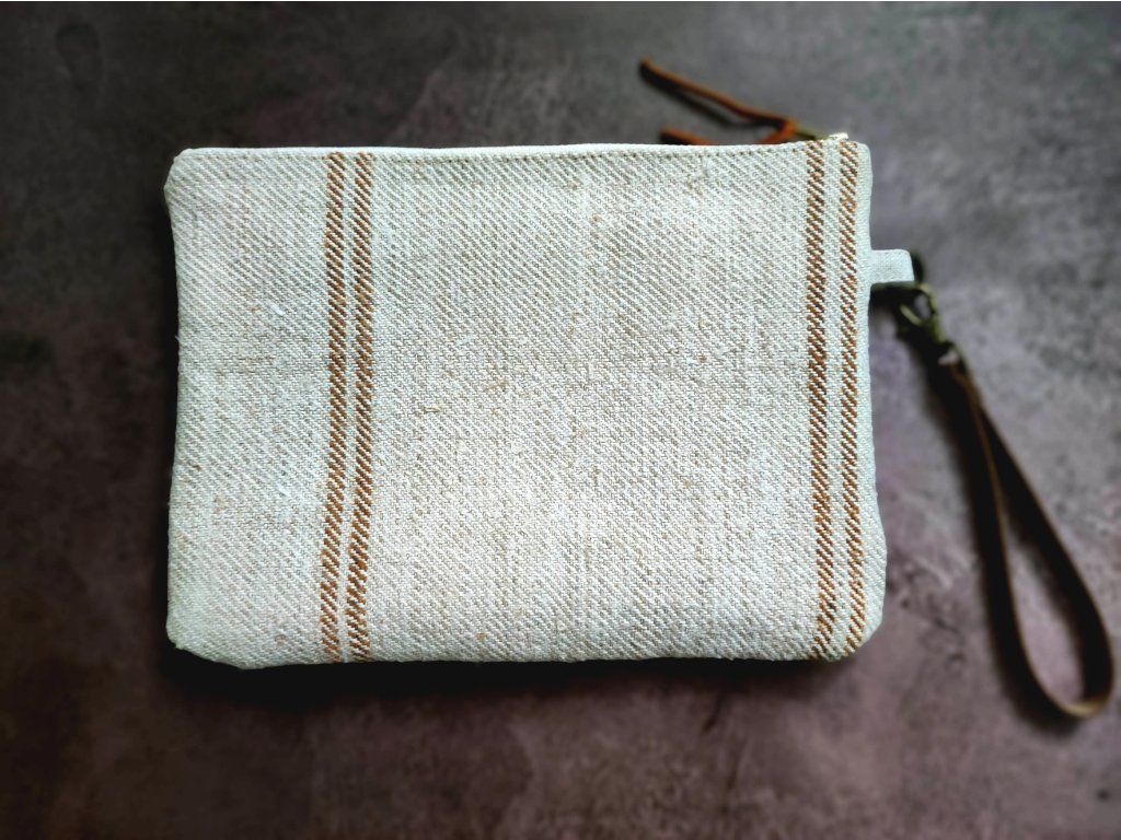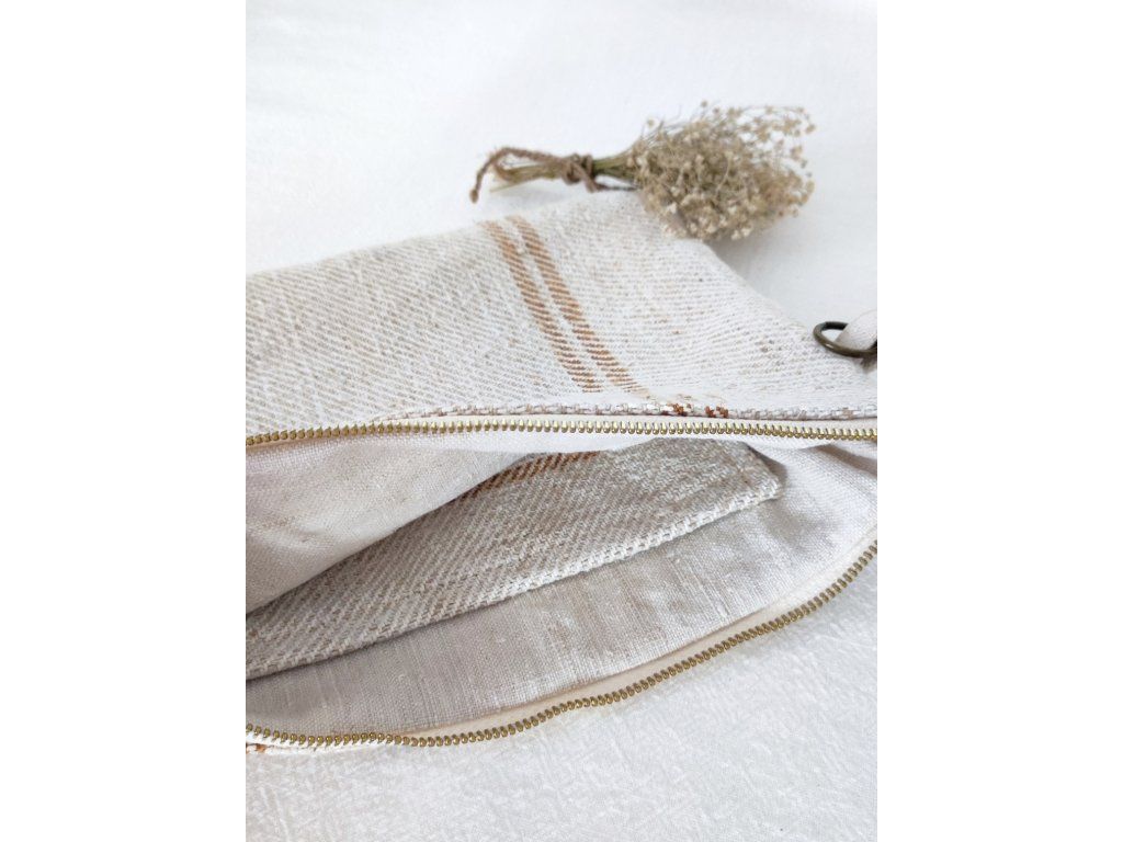 Barna csíkos vászon neszesszer - természetes anyagokból