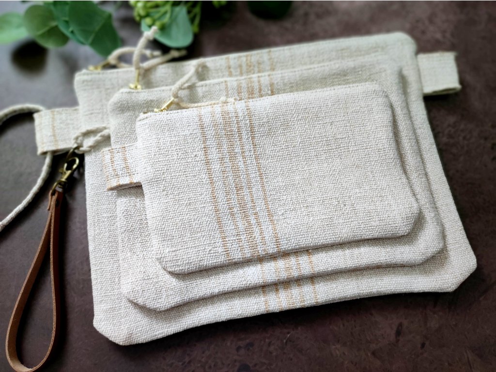 Zero waste zsákvászon pipere- vagy projekt táska karamell barna csíkozással