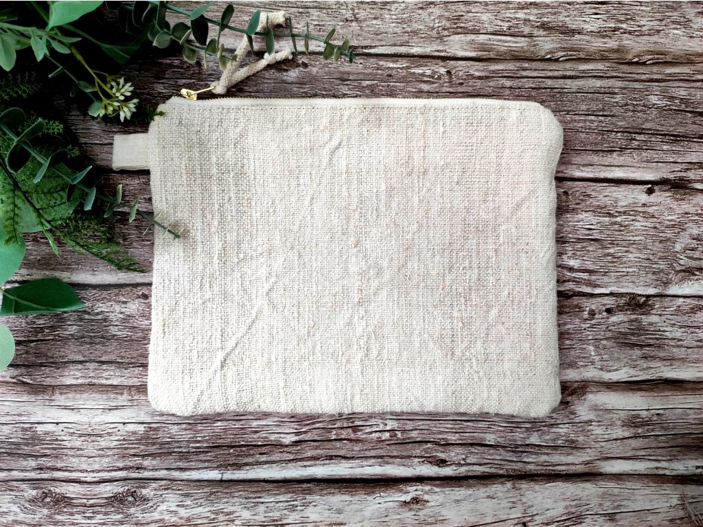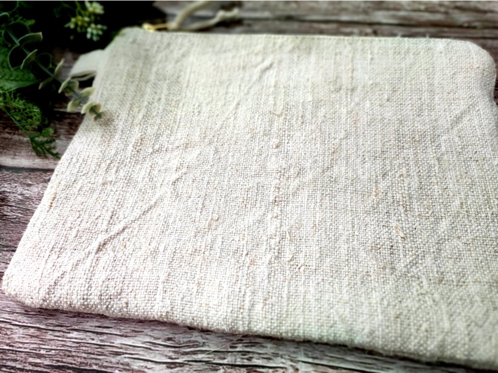 Antik lenvászon belseje és közbélés nélküli kialakítása teszi teljesen zero waste darabbá. Ideális pipereknek, apróságoknak, ceruzáknak, kötőtűknek vagy akár utazáshoz evőeszköznek – minden, ami belefér.