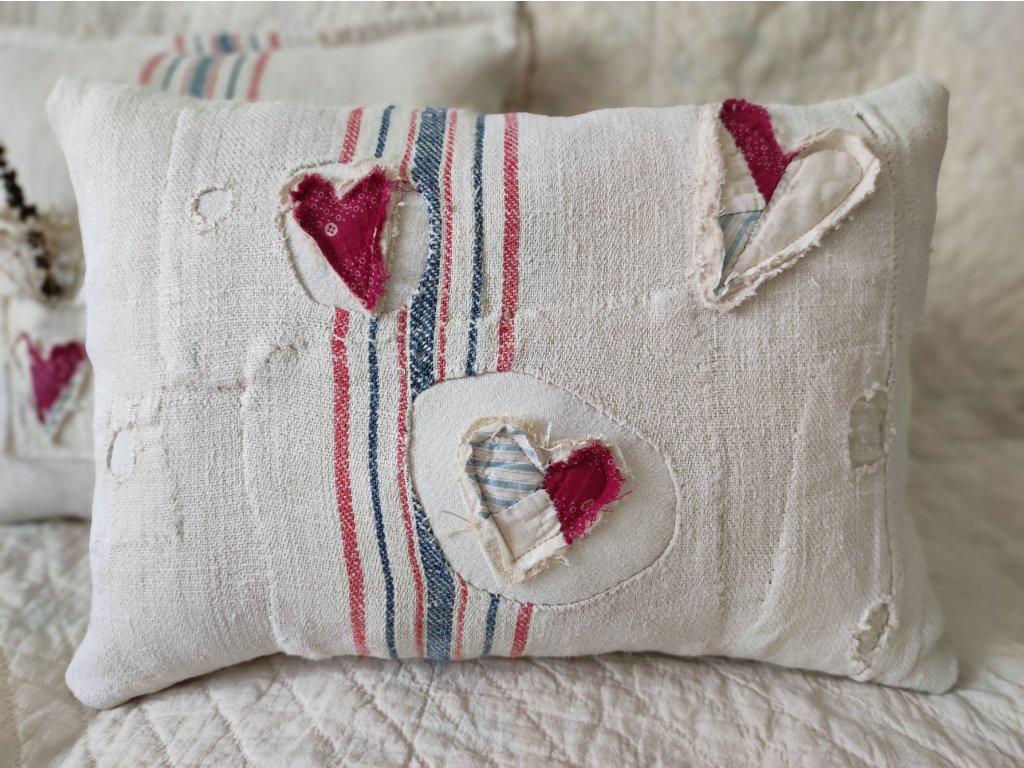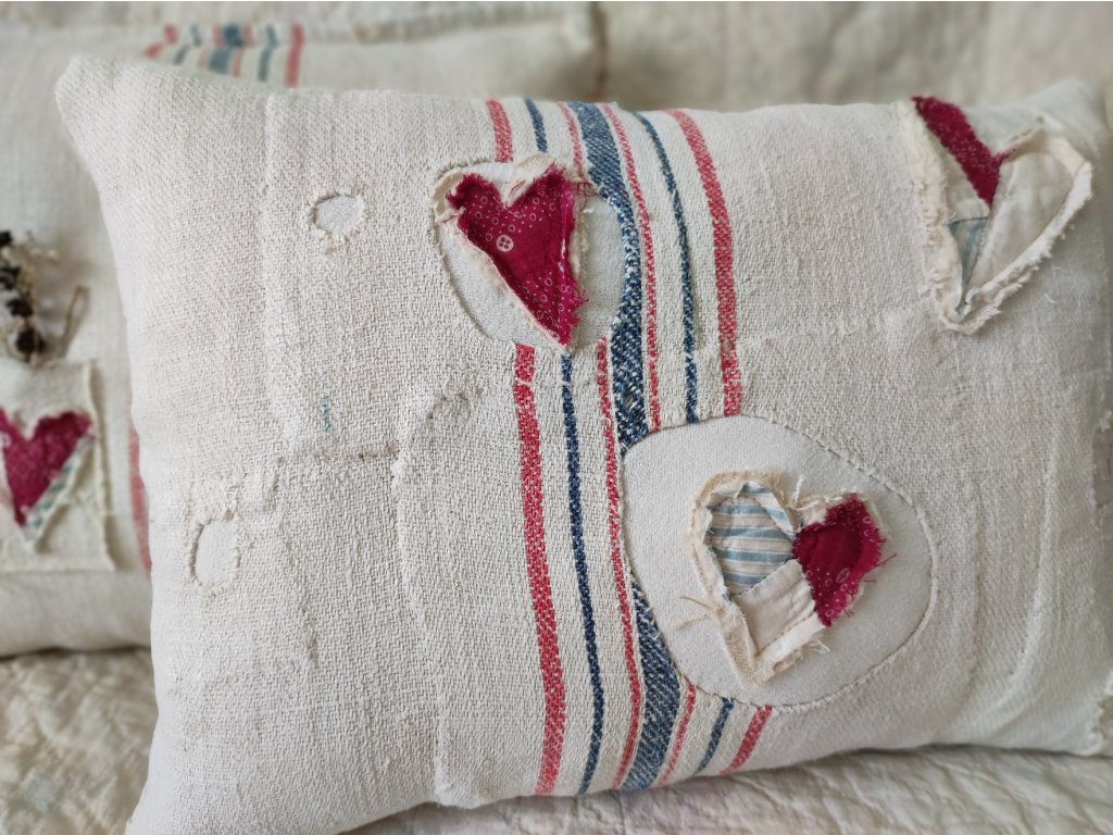 Farmhouse vászon párna szíves - Valentin dekoráció