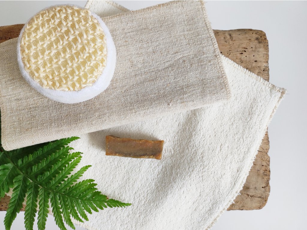 Lenvászon és bézs frottír mosdókendő szett