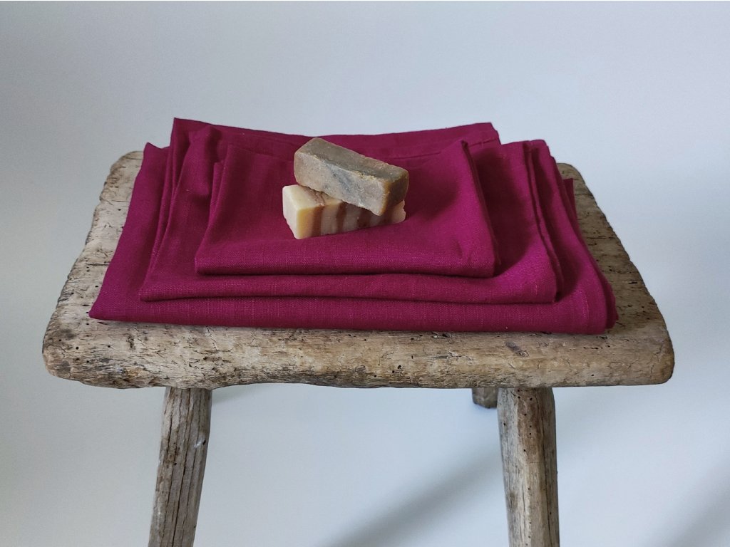 Cseresznye piros lenvászon törölköző szett