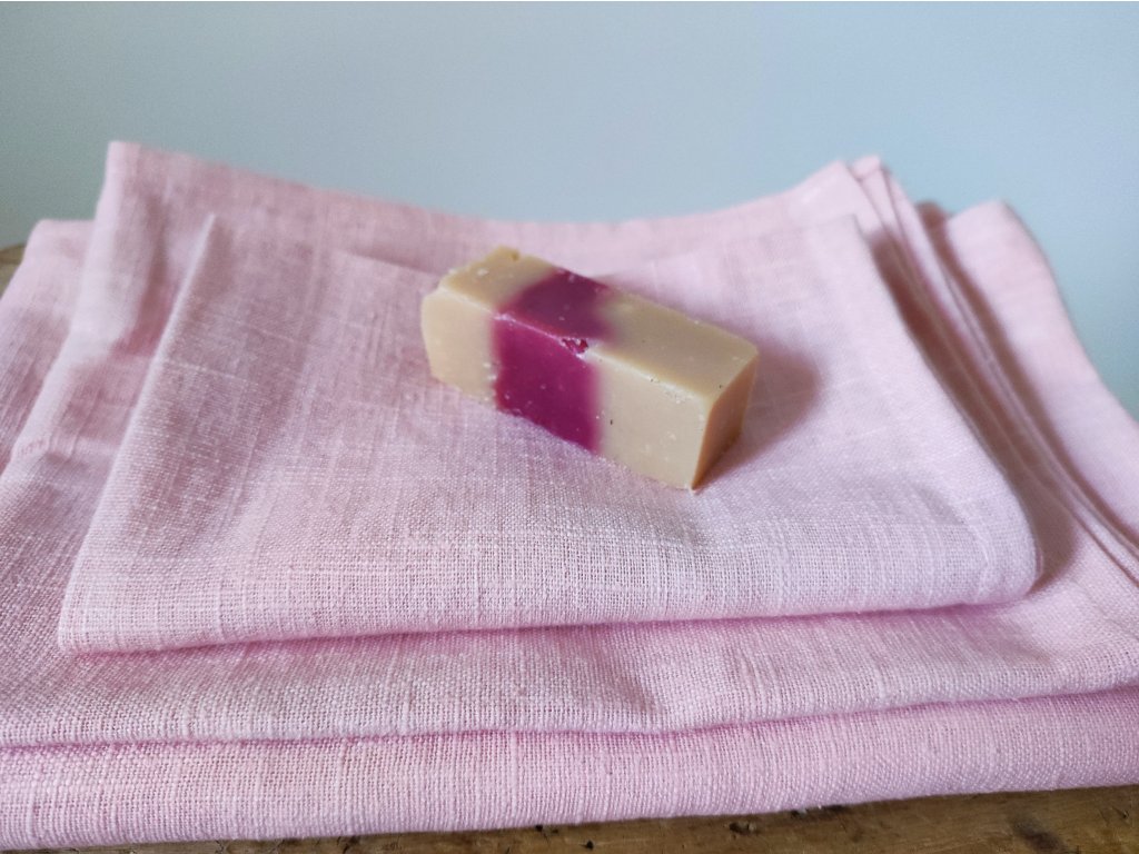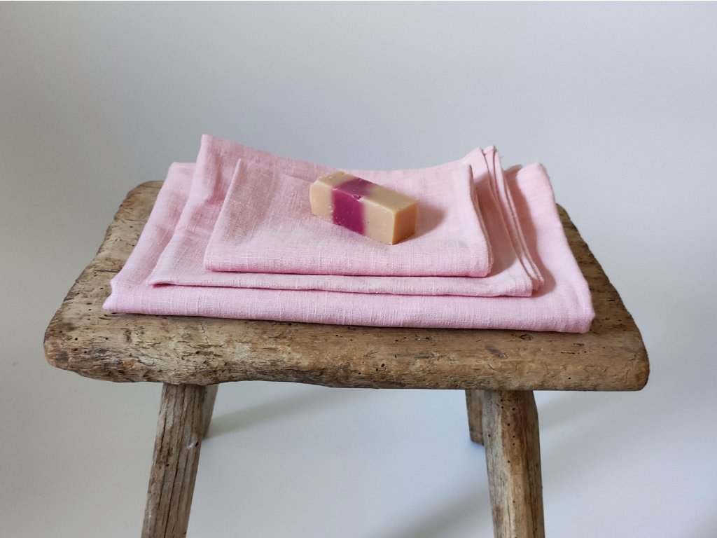 Rózsaszín lenvászon törölköző szett
