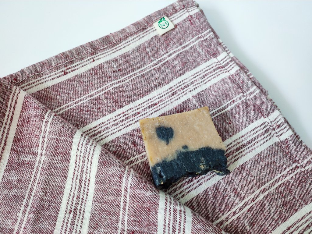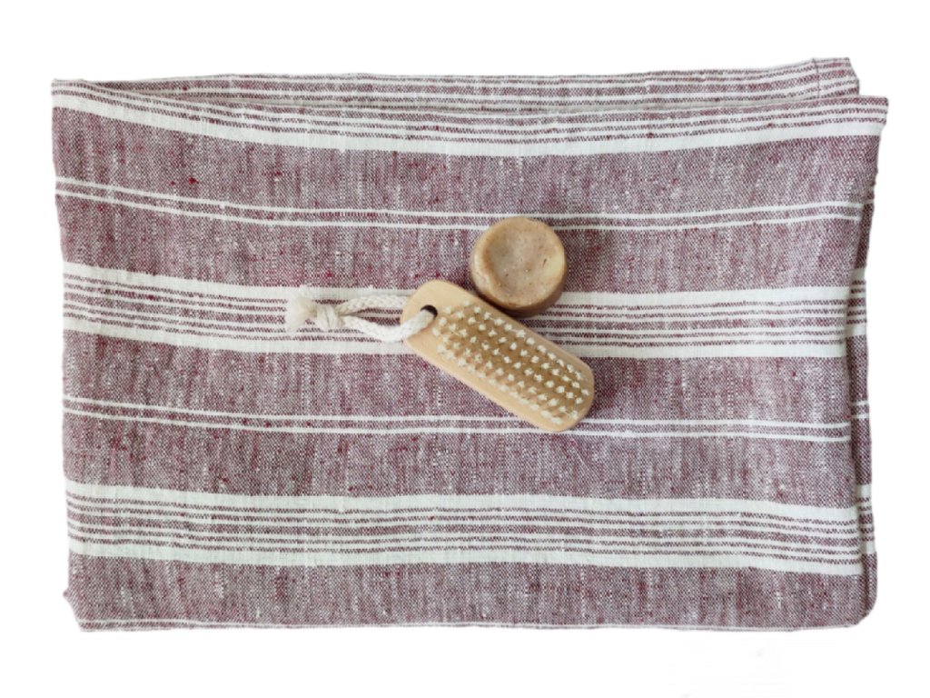 Nagyméretű puha csíkos lenvászon törölköző - melánzs bordó
