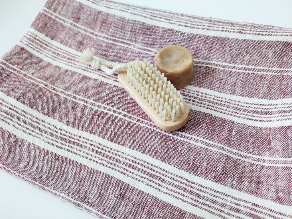 Ez a törölköző a letisztult formák és a természetes anyagok nyugodt eleganciáját hordozza. A melánzs bordó minta visszafogott, időtálló megjelenést ad, miközben a puha tapintású lenvászon kellemes, otthonos érzetet teremt a mindennapokban.
