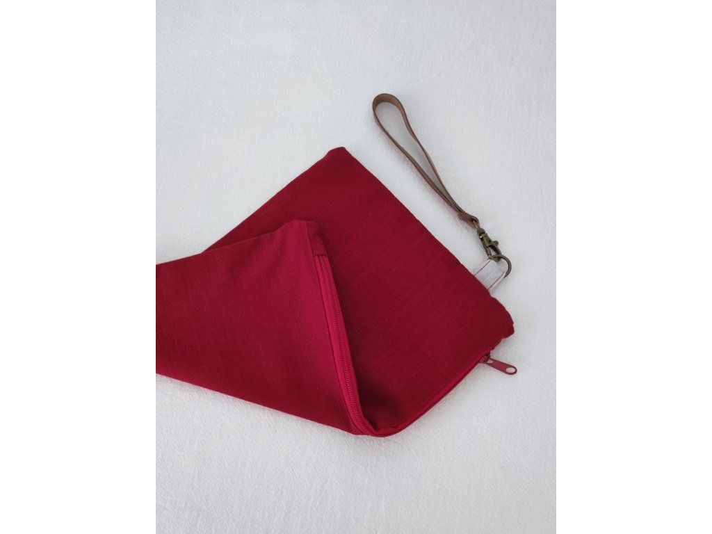 Piros lenvászon neszesszer - nagyméretű minimalista kozmetikai táska