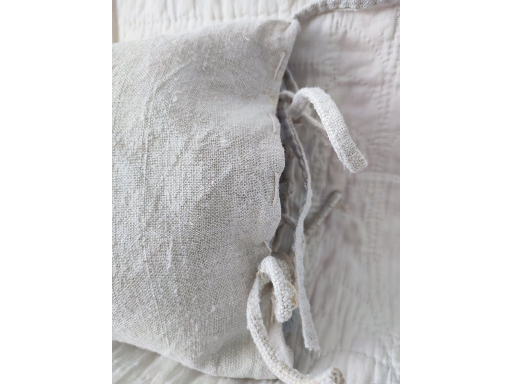 A motívum alapja eredeti vintage amerikai patchwork textil, melyet régi csipke és vászon részletek tesznek még romantikusabbá. A párna alapja régi lenvászon, amelyen korából és használatából adódó apró foltok előfordulhatnak - ezek a textil történetének természetes lenyomatai. Oldalt megkötős kialakítású, antiallergén poliészter töltetű párnával együtt.