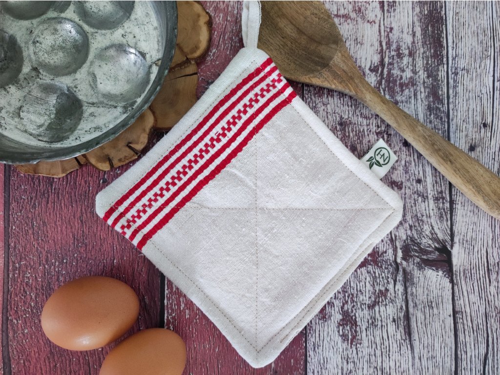 Az edényfogók és edény alátétek természetes vásznakból készülnek, bélésük poliészter, zero waste kivitel esetén 100% kender vagy bambusz-pamut bélést használok.