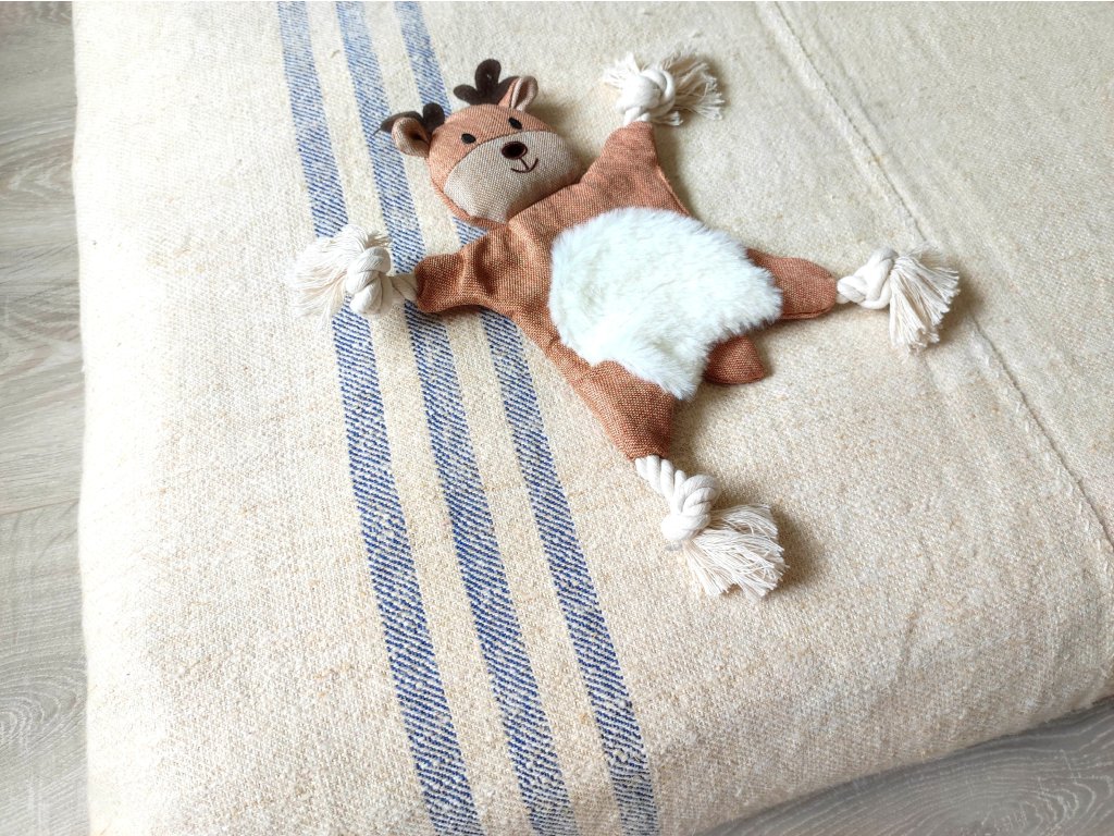 Kényeztesd közepes testű kedvencedet ezzel a természetes  kutyafekhellyel, amely praktikus és könnyen karbantartható. A huzat régi vastag vászonból készül, kézzel szőtt kender vagy kender-pamut keverékből, az alsó panel pedig antik lenvászon, ami karaktert és rusztikus eleganciát ad a fekhelynek.